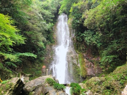 全国名水百選の清水川の上流にあり、別名「珠簾(たますだれ)の滝」とも呼ばれます。標高1,000メートル級の天山山系から流れる清流は全国名水百選にも選ばれ、幅13mの清流が落差75mの崖を垂直に落ちてくるさまは豪快でありながら、美しさを感じさせます。